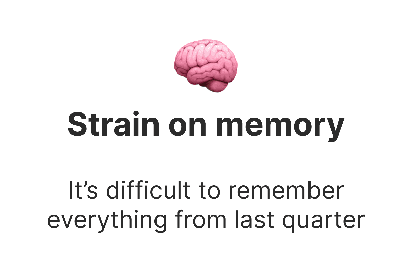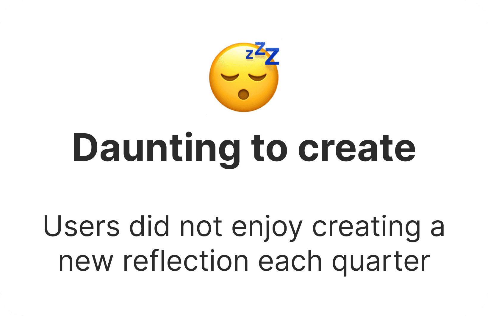 Negative user feedback indicated that the experience felt similar to filling out a form. Many also found it challenging to complete in one sitting, as they often needed to pause and look back on what they had accomplished during the previous quarter.