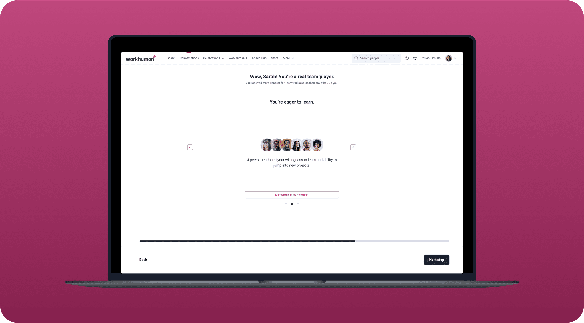 This project was completed during my time at Workhuman, a SaaS company focused on social recognition. One of their core products is Spark, a platform that allows employees to give peer-to-peer recognition, earn rewards, and view shared moments of praise across the company.