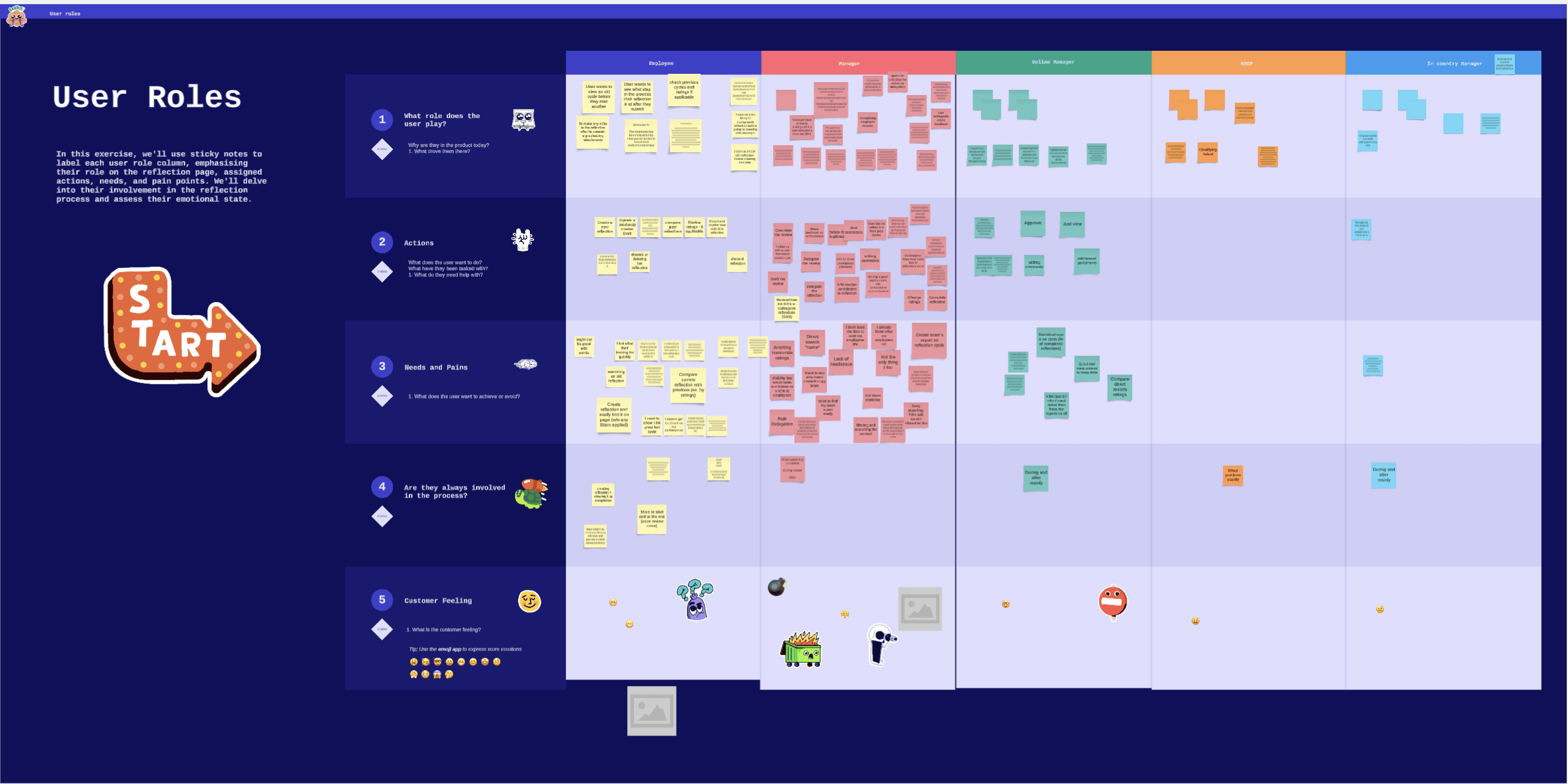 Next, I facilitated a workshop where participants were prompted to map out their current experiences, ideal experiences and communicating common pain points and deeply exploring the expectations for each user role within the platform.