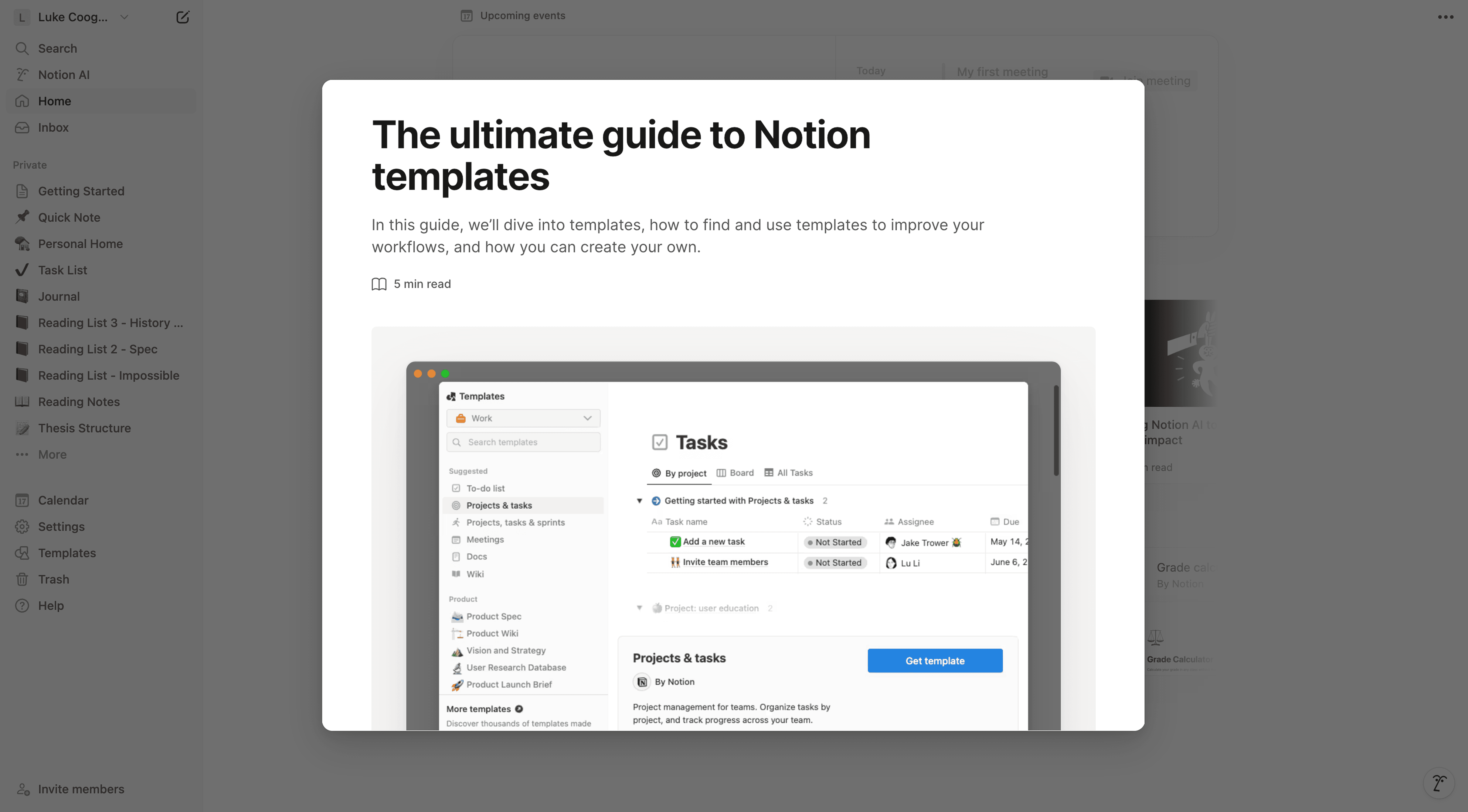 When a user clicks the "Create" call-to-action on the dashboard, they are prompted to choose the type of content they want to create.